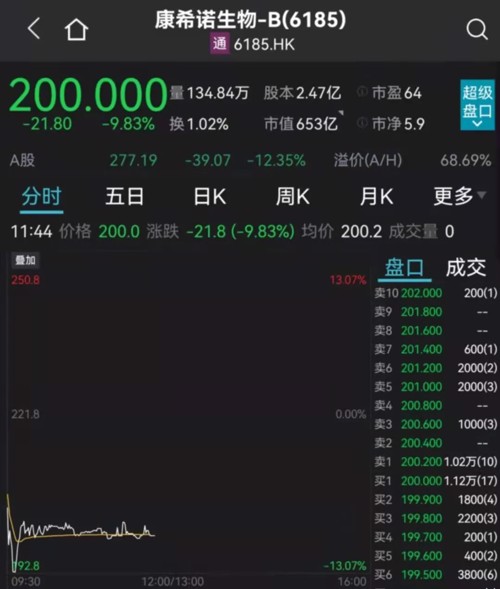 港股方面,康熙诺生物-B盘中下跌超13%,截至发稿,下跌9.83%,总市值报653亿港元,几乎与A股持平。