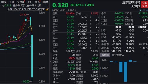 其中,海纳星空科技突然闪崩,截至发稿,跌超82%。