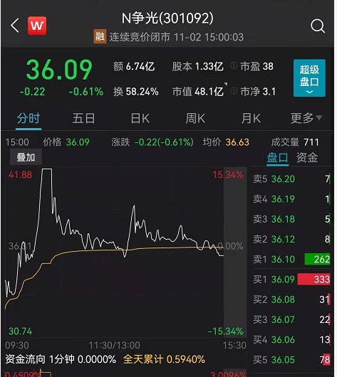 今天,争光股份登陆创业板,和前期接连破发的新股一样,开盘破发,跌11.32%。