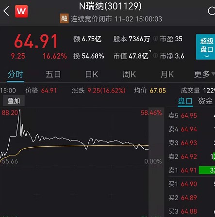 除此之外,同日上市的瑞纳智能平开。截止发稿,瑞纳智能涨逾16%。