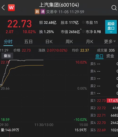 上汽集团封住涨停板