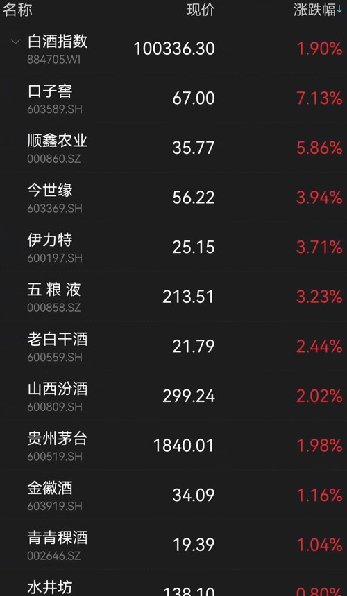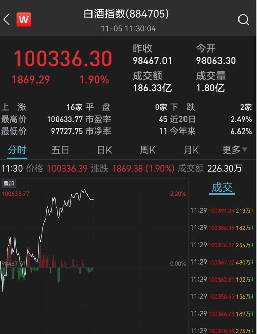 白酒股持续拉升,指数收涨近2%。