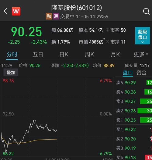 隆基股份一度跌超6%