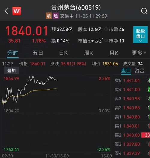 茅台大涨近2%