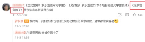 不过,对于有着”行业冥灯“之称的罗永浩而言,这一官宣让网友纷纷调侃,元宇宙危险了。