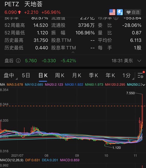 周一,中概股的走势分化也很严重。一家小市值中概股大涨近57%。