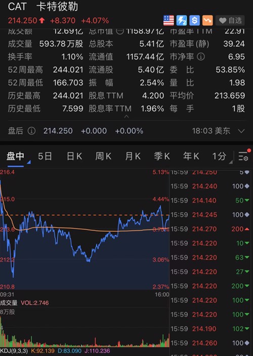 工程机械股方面,卡特彼勒涨超4%,市值上涨45亿美元,约合290亿人民币。