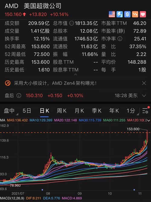 周一,AMD大涨10%,市值上涨167亿美元,约合1067亿人民币,其股价也创下新高。