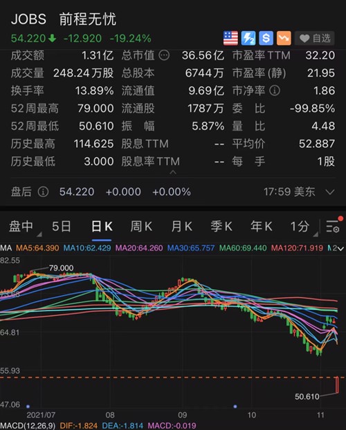宣布称私有化计划可能出现变化的前程无忧大跌19%。
