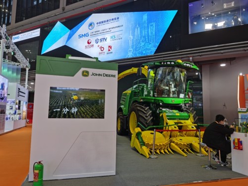 此次进博会还有日立展示的ZX490LCH-5A打桩机,约翰迪尔最强劲拖拉机。