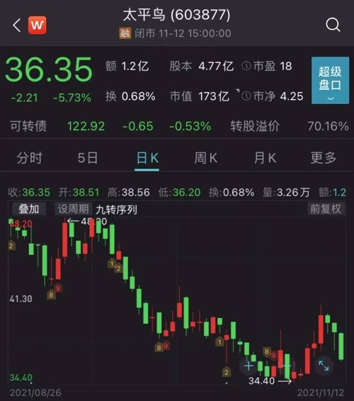 股价方面,太平鸟的股价在近四个多月以来震荡下跌,截至11月12日收盘,每股报36.35元,市值173亿元。相较于7月最高点59.8元/股,跌幅达39%。