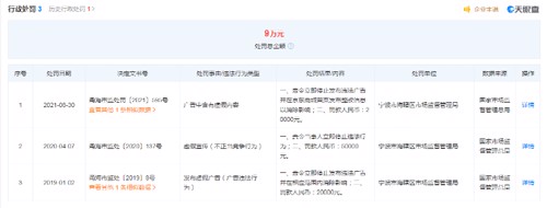 近三年来,太平鸟因虚假宣传及发布虚假广告共被罚款9万元。
