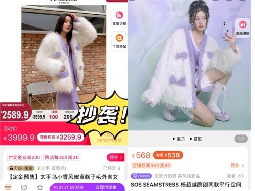 该店铺的服装设计师称,在他们推出的原创设计里面,许多新颖的服装都曾被其他同行店铺抄袭、盗用,导致其客户流失或销量下降。“小品牌、小公司真的很难生存,我们没有时间和精力去维权打官司。”