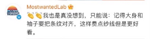 另一家发现被抄袭的小众品牌MostwantedLab曾无奈地发微博表示,真没想到被抄袭,但希望太平鸟能抄的好看点。