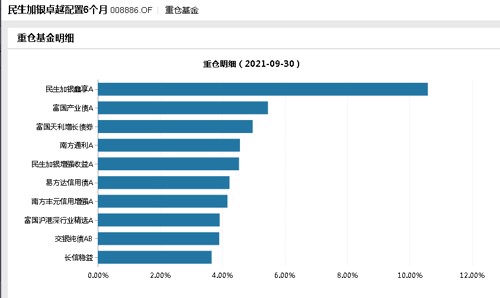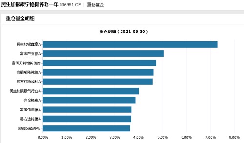 资料显示,民生加银基金旗下有两只FOF的第一大重仓基金就是民生加银鑫享债券。民生加银卓越配置6个月混合型(FOF),和民生加银康宁养老(FOF)(F006991)。