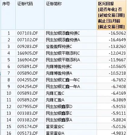 而记者查询wind数据,近一个月以来,合计有4只基金产品的跌幅超10%(A\C产品合并算一只)。除了民生加银旗下两只,还有宝盈盈辉纯债C跌幅较大,达到13.83%,先锋博盈纯债跌幅也超过10%。