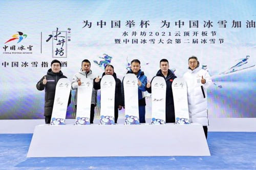 就在中国冰雪庆功酒发布同一天,2021年水井坊云顶开板节暨中国冰雪大会第二届冰雪节在张家口密苑云顶乐园启动,这是水井坊和中国冰雪滑雪项目比赛场地战略合作内容之一。
