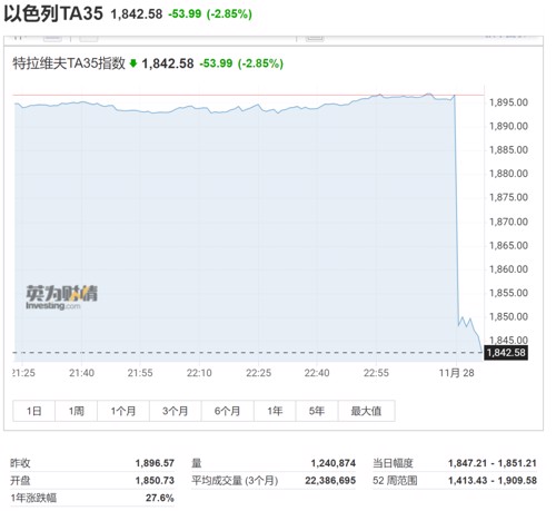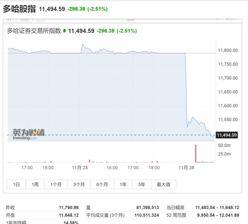 以色列指数、多哈股指双双跌超2.5%。