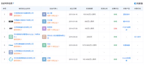 天眼查显示,目前北京海纳百泉投资基金管理有限公司有12次对外投资,其中超90%为租赁和商务服务业,累计投资总额超2800万;此外还有7次历史对外投资,涉及家用电器、车载智能硬件、电商网站、医疗器械、人工智能等领域,累计投资金额超4900万元。