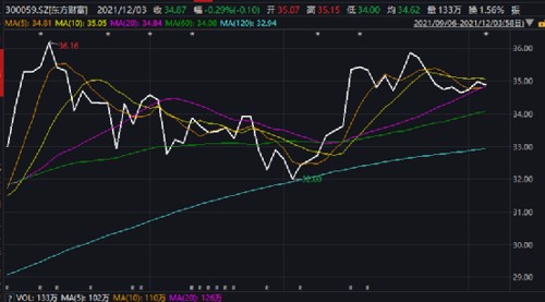 事实上,近期东方财富的股价一度经历回调。9月13日,东方财富盘中创下股价阶段高点36.80元,此后该股连续3个交易日(9月14日至9月16日)下跌,到11月2日股价仍维持震荡下跌走势,一度跌至32元。