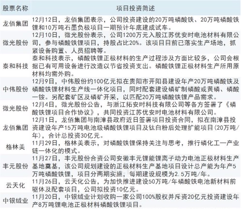 受需求影响,2021年以来吸引各路资本纷纷大举投资磷酸铁锂。