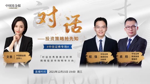 12月15日19:00,中国基金报精心打造的《对话·投资策略抢先知》第五期上线播出。本期我们邀请到中信证券研究部首席宏观分析师程强和中信证券研究部联席首席策略师裘翔两位业内知名首席分析师,为专业投资人和普通投资者奉上年度研究思考和投资判断。