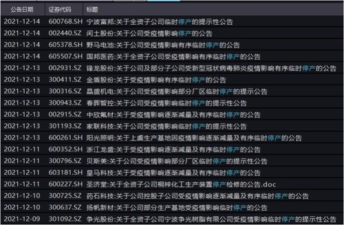 此前几天,争光股份、扬帆新材、皇马科技、贝斯美、浙江龙盛、阳光照明、中欣氟材、春晖智控、晶盛机电、锋龙股份、金盾股份、家联科技等10余家浙江本地上市公司已先后发布公告称,旗下子公司积极响应政府防疫政策,有序停产。此外,注册地位于江苏的上市公司药石科技,其位于浙江绍兴上虞区的控股子公司浙江晖石也临时停产了。