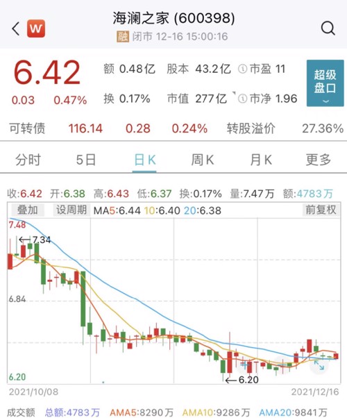 股价方面,截至12月16日收盘,每股报6.42元,总市值为277亿元。