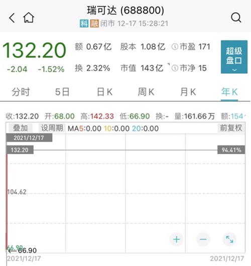 中欧基金周蔚文、汇添富基金劳杰男、胡昕炜、杨瑨,富国基金李元博、景顺长城基金詹成等一众明星基金经理出席瑞可达的调研,此外,还有美银证券等外资机构。瑞可达专注于连接系统和微波组件,产品广泛应用于数据通信、新能源汽车、工业控制、医疗设备、轨道交通等领域。今年以来,瑞可达股价已接近翻倍。