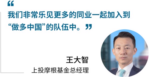 王大智 我们非常乐见更多的同业一起加入到“做多中国”的队伍中。当前,投资中国已经成为海内外资管行业的共识。对于上投摩根基金来说,经过17年的在地深耕,我们有丰富的产品线、有成熟的投研团队和渠道伙伴,并且了解国内的法规和趋势,因此面对未来的市场,我们有信心为客户提供更优质的服务。同时,我们也准备好了与包括外资机构在内的所有投资机构同台竞技,互相鼓励和互相学习,一起助力中国公募基金行业的长期发展。