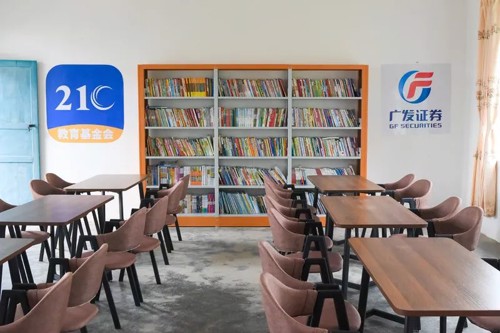 由广发证券30周年“爱心集市”公益活动善款捐建的“爱心阅读室”