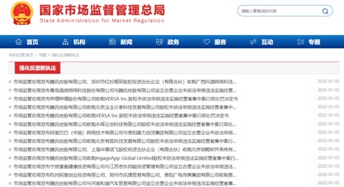 2021年12月31日,市场监管总局对哔哩哔哩股份有限公司收购VERSA Inc.股权未依法申报违法实施经营者集中案作出行政处罚决定,现将行政处罚决定书予以公告。