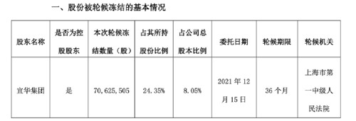 此外,宜华健康控股股东所持7062.55万股被轮候冻结。截至2021年12月16日,控股股东宜华集团累计被冻结股份约2.19亿股,占其所持股份比例的75.65%,占公司总股本的25%。