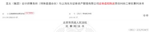 后经北京市第二中级人民法院审理,判决亚太会计所向东方证券资管赔偿15712500元,以及相关利息和违约金。