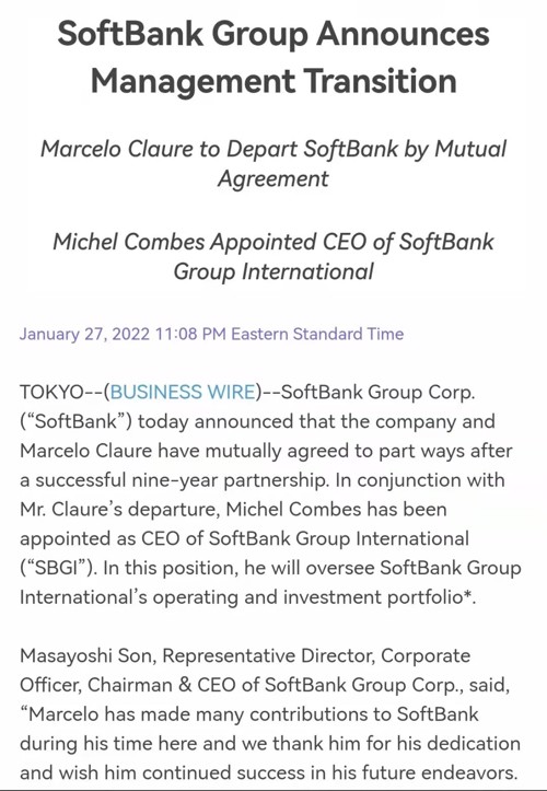 有观点认为,克劳尔的离职正处于软银扩张日本团队之际。2022年伊始,软银集团曾计划扩大其“愿景基金”的日本投资团队,增加员工并加大交易撮合力度,以改变过去10年在本土市场投资不足的局面。