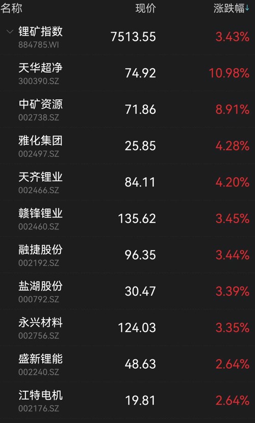 其中,盐湖提锂板块涨幅靠前。中铝国际开盘后,迅速封死涨停。