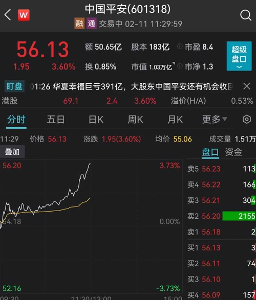 “请珍惜50元以下的平安”,今天,中国平安也大涨3.6%,最新股价56.13元每股,市值重回万亿以上。
