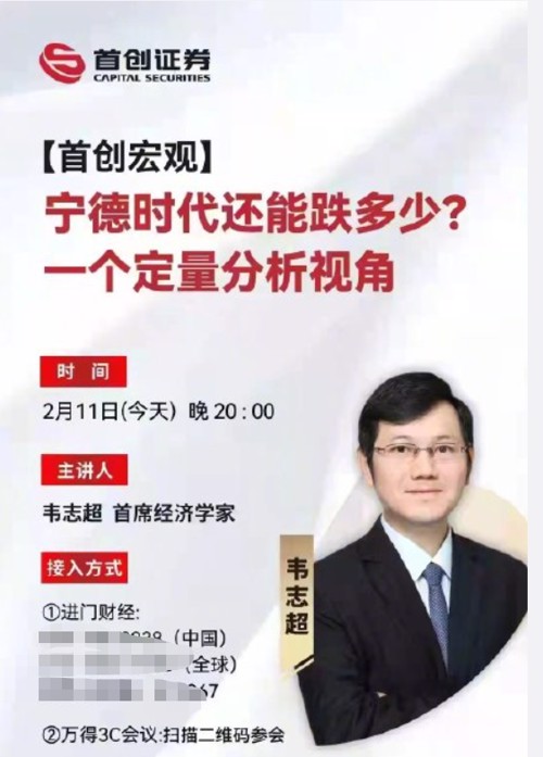 11日盘后,首创证券原定于今日晚间20时举行的“看跌”宁德时代电话会议临时取消。该电话会的主题为“宁德时代还能跌多少?一个定量分析视角”,主讲人为首席经济学家韦志超。