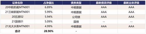 债券投资方面,根据最新基金季报显示,前五大债券均为评级AAA的高等级信用债和利率债,近年来债券市场信用违约事件频发,我们对于债券的谨慎筛选大幅降低了踩雷概率。