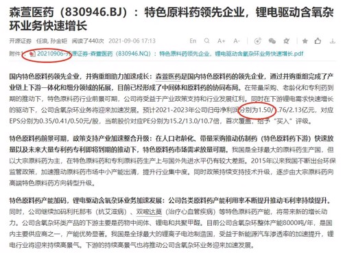 业绩下滑,并且从此前券商研报预计的2021年净利润1.5亿元来看,低于券商预期。根据开源证券2021年9月份的研报,预计森萱医药2021年的净利润为1.5亿元。