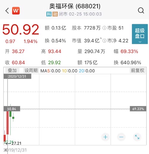 股价方面,奥福环保2020年股价全年累计涨幅近70%,2021年股价累计跌12.97%。