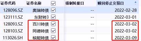 接下来的一到两周,还有百川转债、同德转债、核能转债将迎来强制赎回,持有上述可转债的投资者也最好尽早做安排。