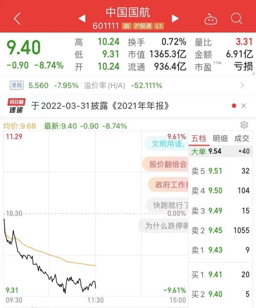此外,疫情影响的千亿市值航空运输白马股中国国航暴跌近9%。