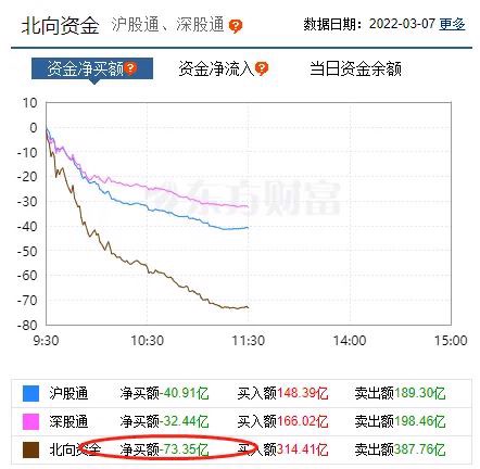 北上资金上午也是大幅净流出,净卖出73亿元。