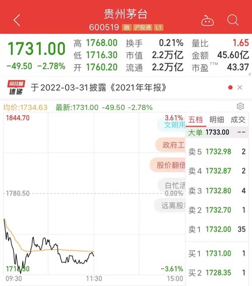 茅台也大跌2.78%,再创调整新低。