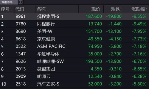 携程、美团、京东健康等暴跌。