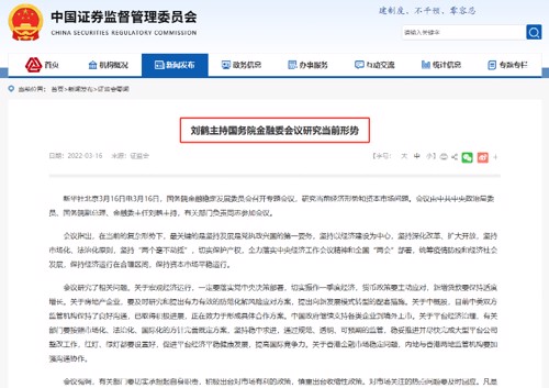 3月16日,国务院金融稳定发展委员会召开专题会议,研究当前经济形势和资本市场问题。