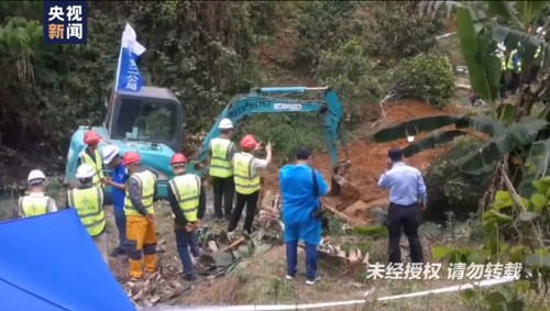 东航客机MU5735的搜救工作正在进行中。目前,MU5735搜救现场下起小雨,挖掘机正在作业开路,方便专家组和搜救人员进出和运输。早前画面显示,因坠机区域三面环山、山路陡峭,救援人员手脚并用攀爬搜救。