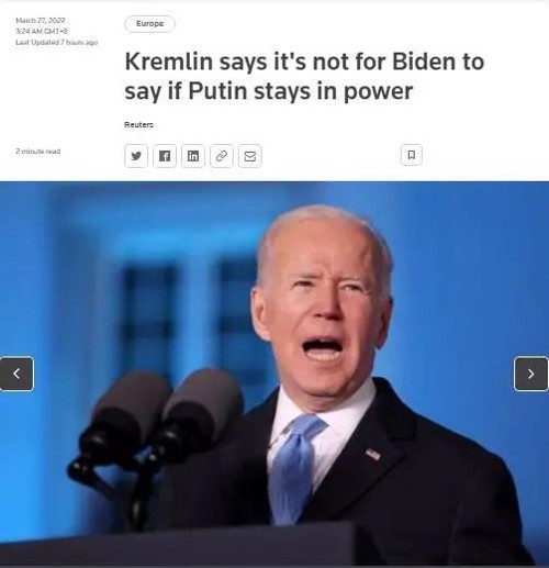 美国总统拜登当地时间26日又语出惊人。据路透社报道,拜登当天在波兰的演讲中,称俄罗斯总统普京“不能继续掌权了”。白宫官员随后出来解释,克里姆林宫同日也作出回应,称“这不是由拜登决定的”。