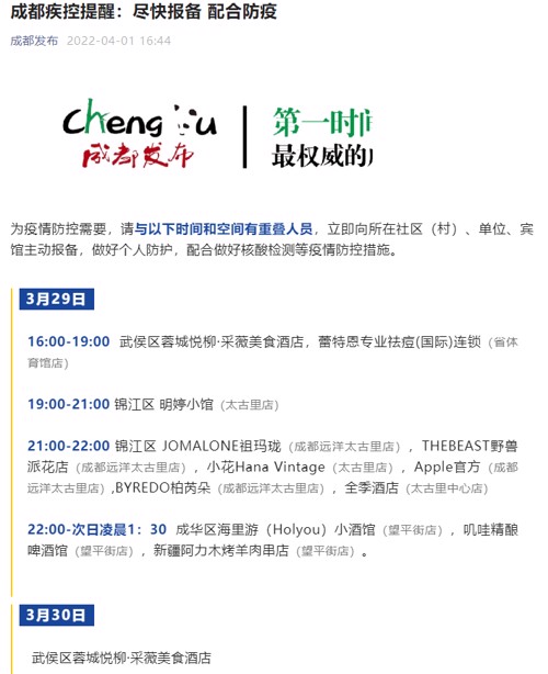 1日傍晚,成都疾控突然发提醒:尽快报备 配合防疫